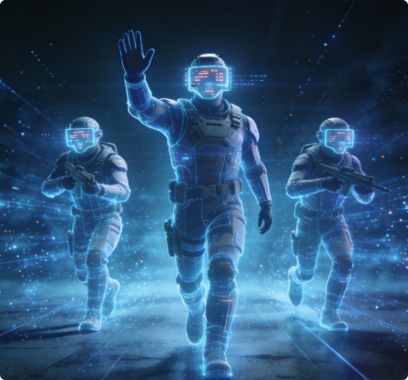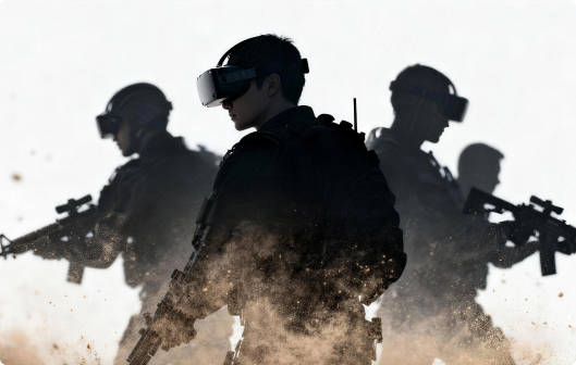 专为国防军事领域设计的高保真、多维度虚拟仿真训练体系。深度融合VR/MR、AI、物理引擎、高精度体感反馈,构建出真实战场环境、装备操作及特情处置的虚拟训练场。旨在以“零风险、低成本、高效率、可量化”的方式,为单兵技能、战术协同、指挥决策及装备维护等全链条军事训练科目,提供沉浸式、智能化、可重复的先进训练手段,全面提升部队在复杂、高危环境下的实战化能力与应变水平。